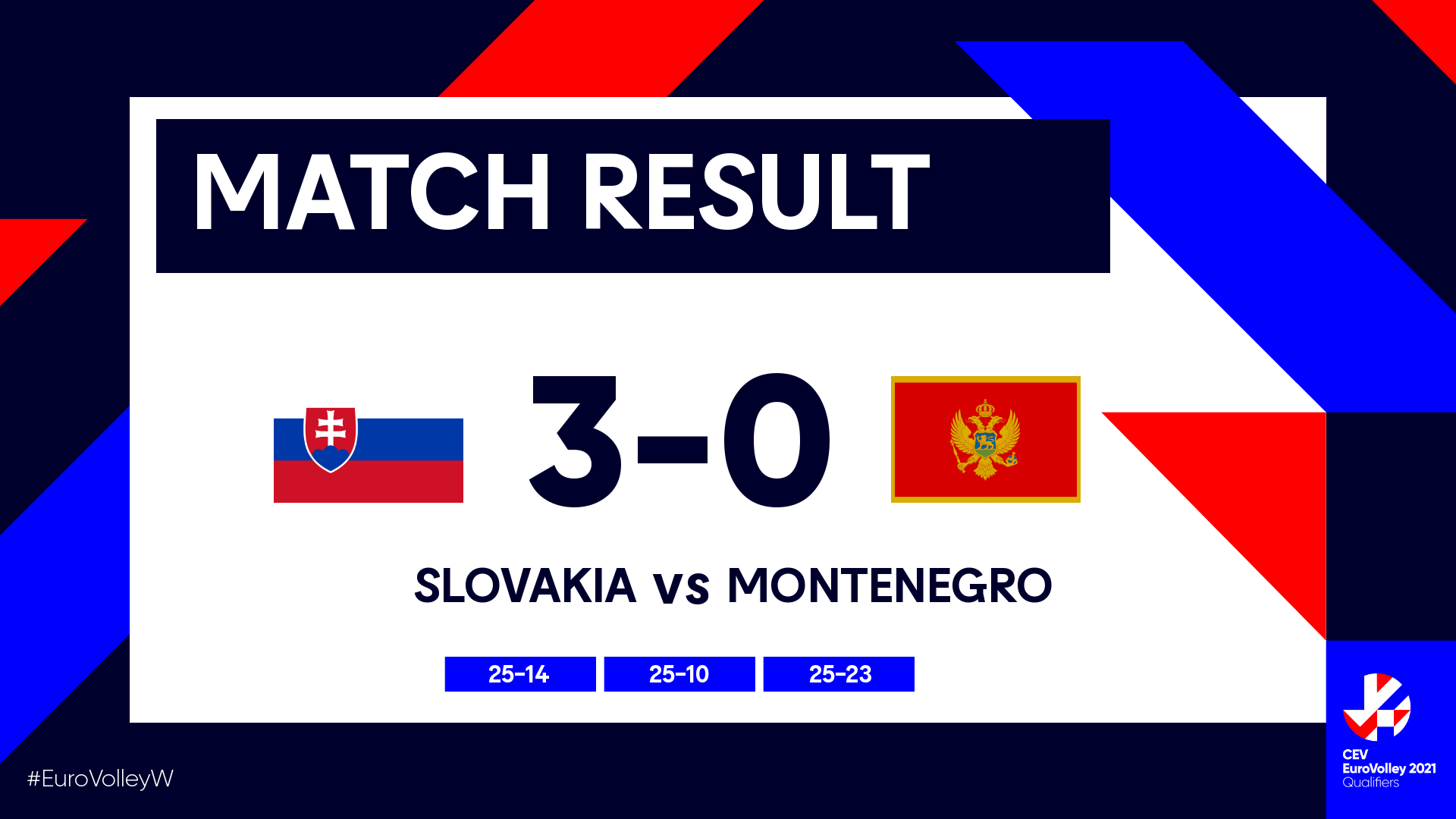 - Slovakia opened with 7-0 lead, improving it further to 11-1 and keeping the score the safe to win the first set with 16 kills - only 4 winning attacks on Montenegrin side