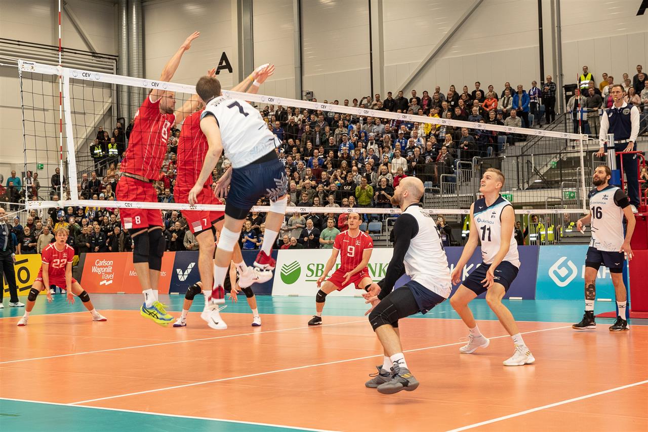 The number of successful point winning blocks of FINLAND compared to DENMARK.