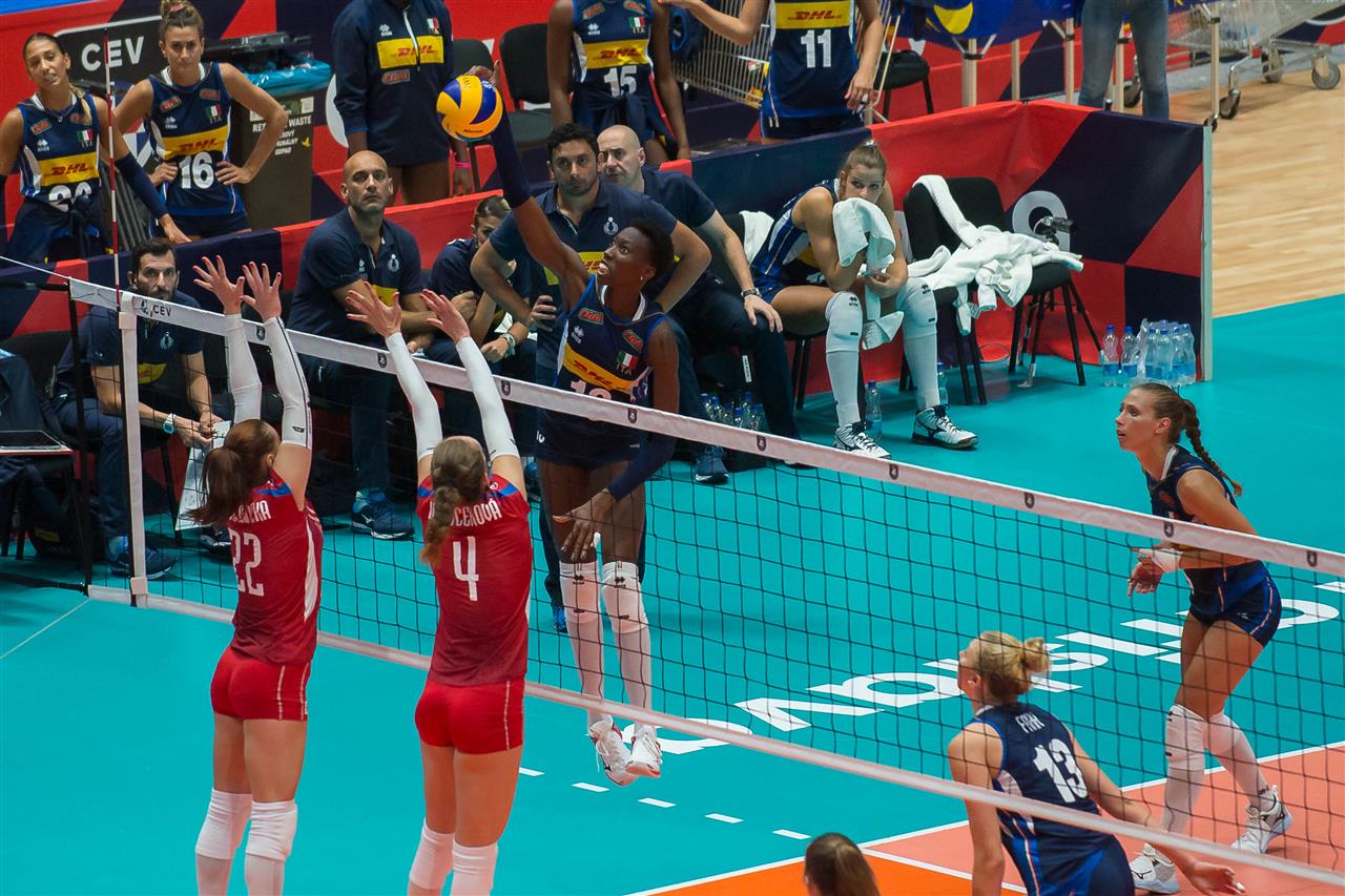 Italy and Slovakia will face each other for the first time in a major event. Italy, defeated only by Poland in the Pool phase, is the favourite team and it can count on Paola EGONU, one of the best opposite of the tournament, but Slovakia has, on its side, the cheering supporter of Bratislava: after an historical qualification to the eighth-finals of EuroVolley, the fans wants more.