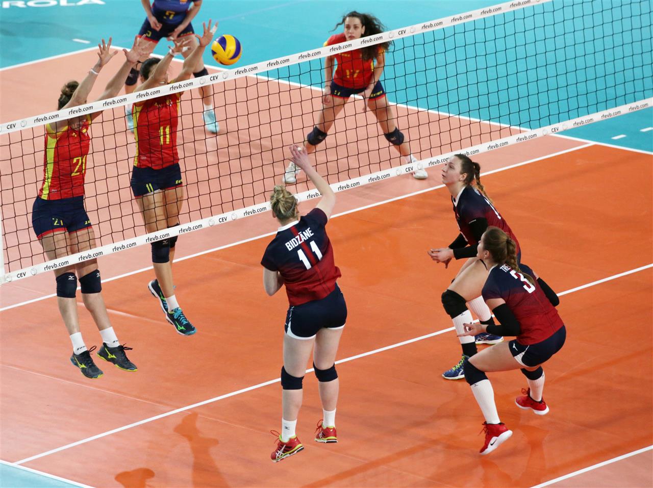 The number of successful point winning blocks of SPAIN compared to LATVIA.