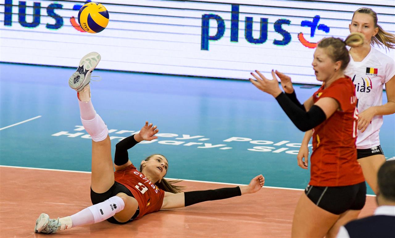 In the third set third set Belgium struggled in the start and Slovenia took the leading and much thanks to Iza Mlakar who had three consecutive great services. But much thanks to a strong block Belgium step by step came closer. At 19 -13 Belgium forced Slovenia to a time out.