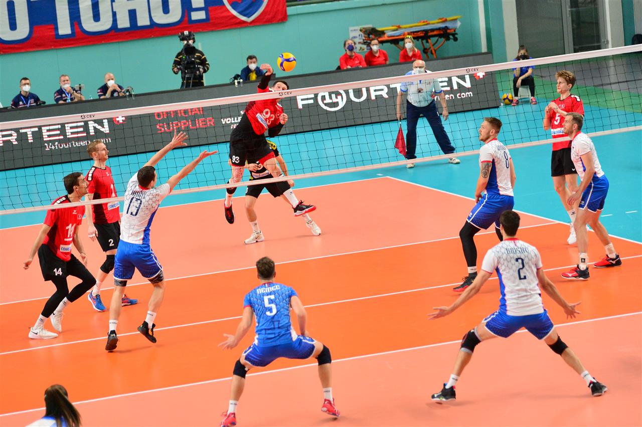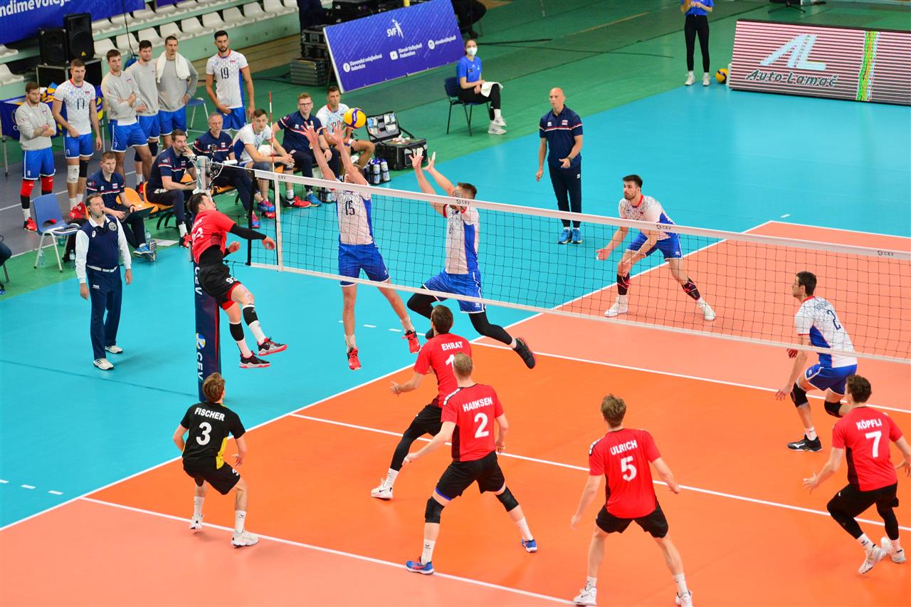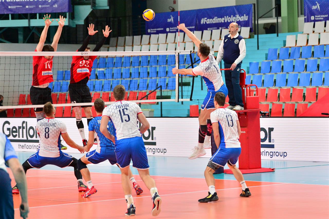 In a match that lasted 85 minutes, the Slovaks were better and with no problems sezied a straight-sets victory. Better on attack (49 winning spikes) and with 8 kill blocks, the players around head coach Marek Kardos outclassed the Swiss.