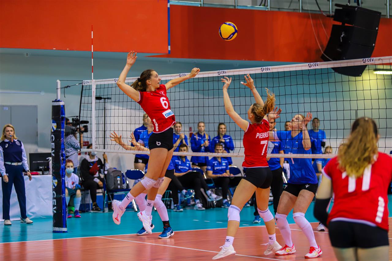 Switzerland accomplished their mission - by earning a victory over Estonia they booked a ticket to the EuroVolley 2021 - Final Round. Switzerland opened the game in a perfect way as the team under guidance of Frieder STROHM started the game with seven-point-advantage that allow them to keep the score safe, especially that they dominated in attack. The second set was the most equal, a passionate point-by-point race lasted up to 20-20, then with Julija MÕNNAKMÄE on service line, with great team efforts, Estonia scored four consecutive points to get a chance to close the set. Switzerland managed to deny four of them, but the fourth one was lucky for Estonia. It was a cold shower for Switzerland who was motivated to grab a ticket tonight. Switzerland led by Maja STORCK outclassed their rival in third set (12 kills to 6). The fourth set began well for Switzerland, but despite a solid advantage they let Estonia to get closer. After a tight end, Switzerland won the match and progressed to EuroVolley 2021 - Final Round. Maja STORCK topped the scorers' chart with 26 points.