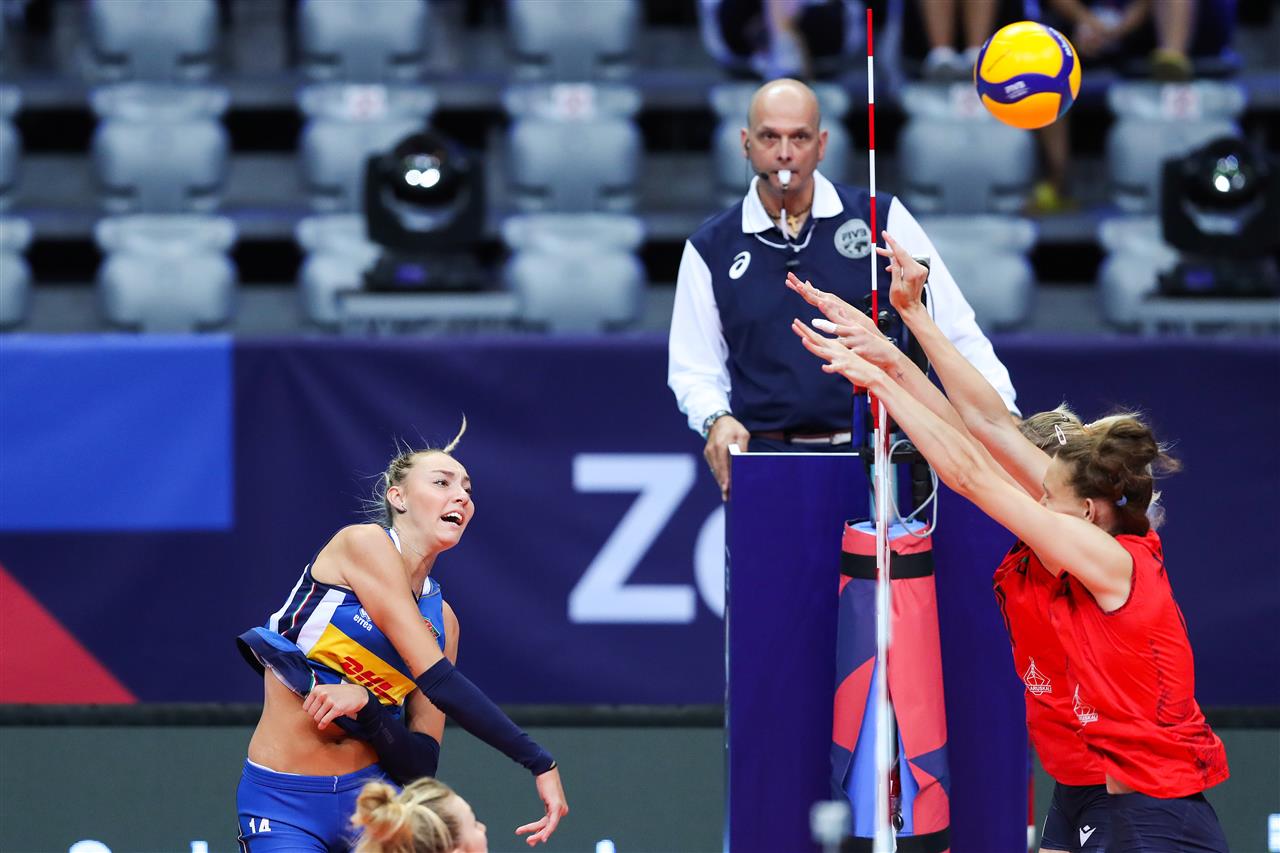 The best Italian player of the first set was Elena Pietrini, outside spiker, who scored 9 points (90% efficiency), with 80% of positive service reception. In the end, she ended up scoring 19 points, while their captain Miriam Sylla scored 11 times and their most effective player - Italian star Paola Egonu – registered 20. That was enough to finish the match without too much stress for their team.